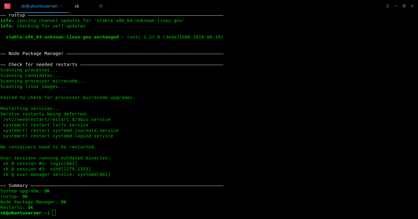 最后,topgrade 将运行 needrestart 以重新启动所有服务。在 Mac OS X 中,它会升级 App Store 程序。