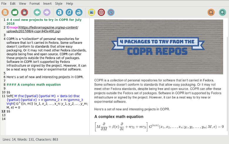 Remarkable是 Markdown 文本编辑器,它使用类似 GitHub 的 Markdown 风格。它提供了文档的预览,以及导出为 PDF 和 HTML 的选项。Markdown 有几种可用的样式,包括使用 CSS 创建自己的样式的选项。此外,Remarkable 支持用于编写方程的 LaTeX 语法和源代码的语法高亮。