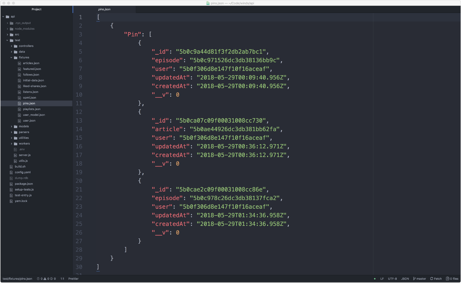 Node.js 里面没有创建配置的简单方式。我们最后做的事情是用 MongoDB Compass 工具导出数据到 JSON 中。这生成了不错的配置,如下图(但是,这是个乏味的过程,肯定会出错):