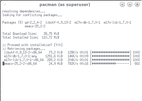 现在,Emacs 将会安装至你的 Arch Linux 系统。