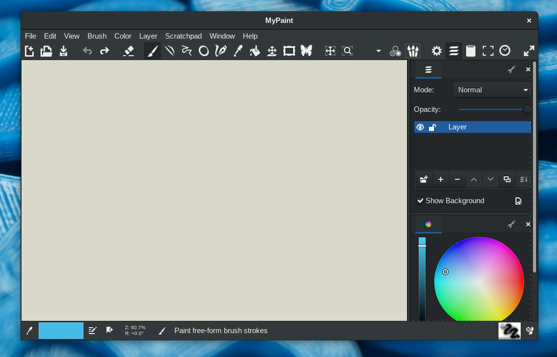 Mypaint 是另一款适用于 Fedora 令人惊奇的数字绘图程序。像 Krita 一样,它有多个画笔和使用图层的能力。