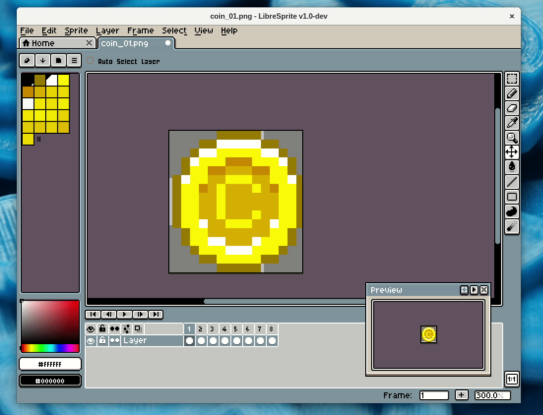 Libresprite 是一个专为创建像素艺术和像素动画而设计的程序。它支持一系列颜色模式,并可导出为多种格式(包括动画 GIF)。此外,Libresprite 还有用于创建像素艺术的绘图工具:多边形工具、轮廓和着色工具。
